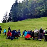 Die Jesusworte in dem vom Untergang bedrohten Boot an seine Jünger „Warum habt ihr solche Angst, ich bin doch bei euch“ aus dem vorher gelesenen Evangelium bezog er in seiner Predigt auf diese Bergmesse. Dabei könne man in dieser „verrückten Zeit“ den Ballast des Alltags unten im Tal lassen und sich an diesem schönen Ort die Augen und Ohren öffnen lassen für das, was wirklich wichtig sei. „Gestärkt von der Begegnung mit Gott und dem Miteinander, das wir hier erleben dürfen, können auch wir Ängste ablegen“, so die Worte des Pfarrers. Würdig umrahmt wurde die Bergmesse von den Reit im Winkler Alphornbläsern und der Blasmusik „Blechrauschen“ aus Schwarzenfeld in der Oberpfalz, die auch noch beim anschließenden gemütlichen Beisammensein auf der Hutzenalm aufspielte.