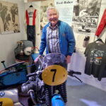 Der älteste Rennfahrer Fred Huber (*1936), lobt in den höchsten Tönen die Ausstellung in Obing und spricht dem MFG ein sehr großes Lob für die viele Arbeit und die „so schöne Ausstellung“, wie er sagt, aus. Mit seinem Bruder Sepp rockten die „Huaba Buam“ couragiert, talentiert und zielstrebig ab 1958 in ihrem BMW-Seitenwagen-Gespann die Rennszene und eilten von Sieg zu Sieg. Nach ihrem „Problemrennen“, dem großen Preis von Österreich, beendete das Brüderpaar 1966 die gemeinsame Karriere, die mit zwei Deutschen Juniorenmeistertiteln und zahlreichen Podest-Plätzen recht erfolgreich war. Sepp Huber (*1934 – +2023) stieg anschließend als Co-Pilot von Arsenius Butscher und Rolf Steinhausen zum damals wohl weltbesten Beifahrer auf. Er krönte seine Laufbahn mit zwei Weltmeister- und einem Vizeweltmeistertitel. Fred Huber bewies von 1964 bis 1966 auch als Bob-Fahrer in den steilen Kurven des der Eisbahn sein fahrerisches Können. Ein Highlight der Ausstellung war sicherlich das Weltmeister-König-Renngespann von 1976 von Rolf Steinhausen und Sepp Huber, dass eigens für das Event von … nach Obing geholt wurde.