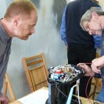 Das Konzept ist dabei ähnlich wie bei den weiteren Angeboten: Während der oft nicht zu vermeidenden Wartezeiten können die Besucher bei anderen Reparaturaktionen über die Schulter schauen oder bei Kaffee und Kuchen mit anderen Gästen, Reparateuren und Helfern ins Gespräch kommen. Auf diese Weise wird modernes Reparieren auf lokaler Ebene in die Gesellschaft getragen, Reparaturwissen bewahrt und verbreitet.