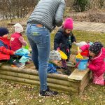 Fotos: Die Rimstinger Spielgruppe in Greimharting – Im Garten zusammen mit Sarah Motschmann (li.) und Andrea Mittermaier  –  Foto: Mary Fischer