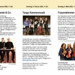 Am Sonntag, 8. Februar um 11 Uhr folgt ein Programm mit Tango als Kammermusik. Der in Mühldorf lebende und weltweit agierende Bandeonist, Perkussionist und Komponist Facundo Barreyra lädt mit seinem Streicherensemble ein zu einer spannenden Mischung aus Leidenschaft, Lebensfreude und tiefsinniger Wehmut. Die dritte Matinee, am Weltfrauentag, Sonntag, 8. März um 11 Uhr ist Streichquartetten von Komponistinnen gewidmet, vom 18. Jahrhundert bis zur preisgekrönten österreichischen Komponistin Johanna Doderer. Es spielt das Carreño-Quartett, deren Musikerinnen von Rosenheim bis Salzburg aktiv sind, u.a. im Rahmen der Maria-Anna-Mozart Gesellschaft.