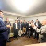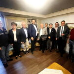 Foto: Hötzelsperger – Übergabe eines Laptops an Kreisvorsitzenden Christian Glas (Mitte mit Laptop) durch Firmeninhaber Maximilian Gilg (li. davon) und Mitarbeiter Manuel Rinderle (re. davon) im Kreise der Kreisvorstandschaftsmitglieder vom Bayernbund Rosenheim.
