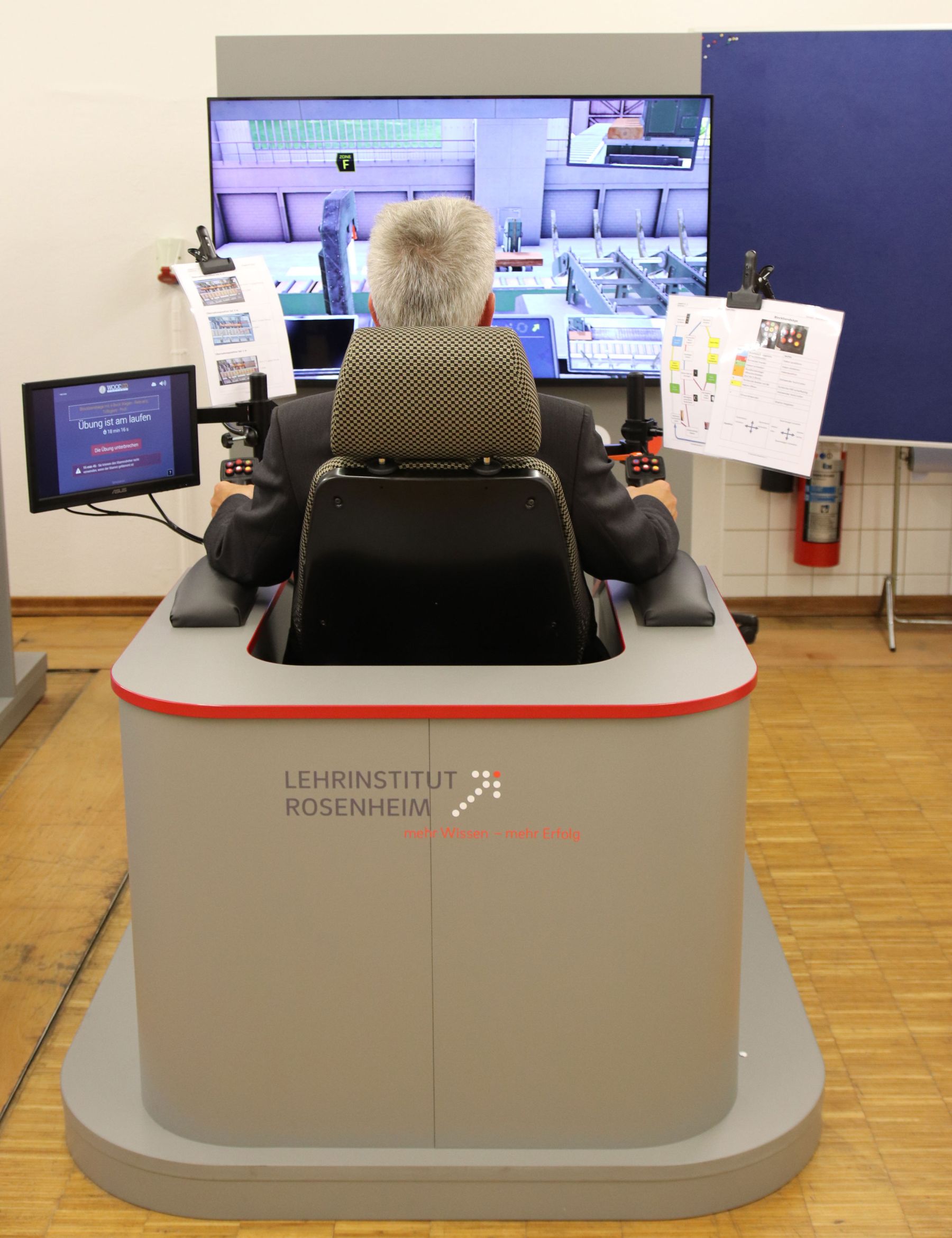 Landrat Otto Lederer hochkonzentriert im Timber Trainer. Foto: Landratsamt Rosenheim.