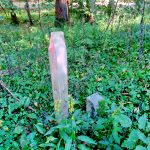 - Grenzstein und Grenzpfosten in einem Waldgrundstück