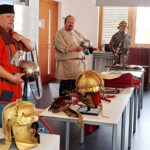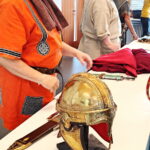 Bevor sich die Schüler alle mitgebrachten Gegenstände, darunter auch viel in mühsamer Handarbeit Gefertigtes, aus der Nähe betrachten und in die Hand nehmen durften, waren noch zwei Freiwillige gesucht. Eingekleidet in Stola und Tunika machten sie als Römerin und Römer eine kurze Zeitreise in die Vergangenheit. Ein abwechslungsreicher Vormittag mit vielen informativen Details. Antike zum „Begreifen“. Auch für nächstes Schuljahr ist ein Besuch der Legio II am LTG Prien fest eingeplant.