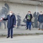 Ein sehenswertes Stahlscherenschnitt-Kunstwerk „Römische Familie“ von Kunstschmied Robert Mayer aus Hörpolding ist in Seebruckan einer Betonwand am nördlichen Ende der Straße „Am Chiemseepark“ angebracht worden. Ein römischer Legionär mit Schienenpanzer, Helm und Schwert aus dem 1. Jahrhundert nach Christus marschiert begleitet von Frau, Sohn und Tochter wie vor 2000 Jahren in Richtung Seeufer. Das lebensgroße Figurenensemble verweist auf die römische Vergangenheit Seebrucks. Seebruck– das römische Bedaium –ist Teil des LEADER-Projektes „Römerregion Chiemsee“, mit dem elf Gemeinden gemeinsam ihre römische Geschichte präsentieren. Nun wurde die Skulptur offiziell eingeweiht – coronabedingt in einem kleinen Rahmen mit Seeon-Seebrucks Bürgermeister Martin Bartlweber, der Dritten Bürgermeisterin Dr. Christine Kosanovic, dem gemeindlichen Römerbeauftragten und Leiter der Tourist-Information Seebruck Matthias Ziereis, dem Manager der LAG Chiemgauer-Seenplatte Christian Fechter und natürlich dem Künstler persönlich. „Das ist ein toller Blickfang, die Römer gehören einfach zu Seebruck dazu“, betonte Bürgermeister Bartlweber und bedankte sich bei Künstler Mayer mit einem kleinen Geschenk.