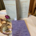 Höhepunkt des Azubi-Jahres im Hotel Post, Rohrdorf – Die Auszubildenden des Hotel zur Post, Rohrdorf wollten ihren Eltern und Ausbildern, so wie es Tradition ist, einen schönen Galaabend gestalten. Viele Monate wurde darauf gewartet, ob ein Abend im Hotel möglich wäre. Ihre kreative Ersatz-Lösung aufgrund der Corona-Situation war ein Ostermenü mit passendem Getränk zum Mitnehmen, für einen schönen Oster-Festabend, Samstag 3. April 2021 mit der Familie zu Hause. Schon Tage vorher wurde vorbereitet, das Menü ausgewählt und bestellt, Menükarten erstellt, Dekoration und Menü vorbereitet. Auch ein Foto für das Modell des gedeckten Tisches zu Hause wurde gemacht, damit alles perfekt wird. Und dann alles im Korb mit nach Hause gegeben. Zum Menü wurden auch die passenden Rezepte mitgeliefert.