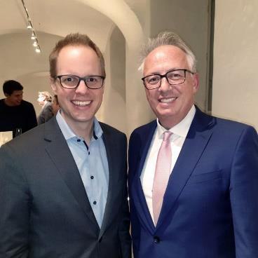 Jens Brandenburg (links) überreichte gestern im Festsaal des TUM Akademiezentrums Raitenhaslach in Burghausen den Förderbescheid an die Projektvertreter. Helmut Leibinger nutzte die Gelegenheit für ein persönliches Gespräch mit dem Staatssekretär (Copyright Rohrdorfer Unternehmensgruppe).
