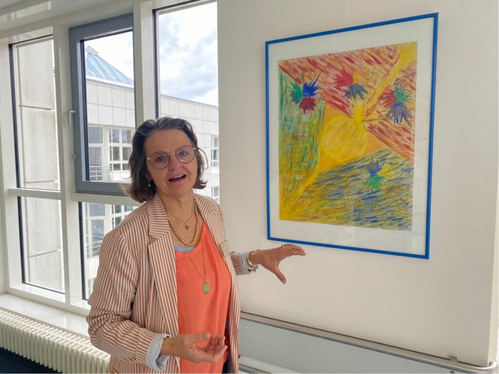 Chefarzt Dr. Hanns Lohner sprach auch im Namen der Klinikleitung einen herzlichen Dank an Christiane von Canal für ihr außerordentliches Engagement aus und wünschte alles erdenklich Gute für den Ruhestand und betonte: „Diese Bilder sind ein Ausdruck von Lebendigkeit und es ist eine wirklich tolle Sache, die Sie hier aufgebaut haben und ich hoffe wirklich sehr, dass diese Arbeit und die Bilder hier noch lange Nachwirken mögen.“ Und was hat die agile Therapeutin jetzt vor? Sie führt weiterhin ihr Atelier, hat ein kleines Buchprojekt über kreatives Stressmanagement mit Kunst, Malen und Yoga in Angriff genommen und wenn dann noch Zeit bleibt möchte sie Kurse zur Krankheitsbewältigung und Gesundheitsförderung anbieten. Ab Herbst sind Projekte für Kinder krebskranker Eltern wieder einmal im Quartal angedacht. Ihr Motto nach 22-jähriger klinischer Arbeit ist frei nach Joachim Ringelnatz: Ein Rauch verweht, ein Wasser verrinnt, eine Zeit vergeht, eine neue beginnt.