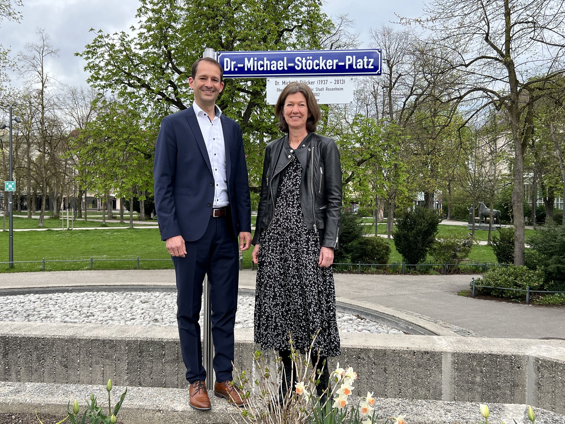 3. Oberbürgermeister Andreas März und Tanja Lühr, Tochter von Dr. Michael Stöcker, vor dem Schild