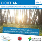 Im Gespräch mit Katrin Posch von der Gesundheitsregionplus im Landkreis Rosenheim und Hagen Dessau von „Hallo Welt – Hier Rosenheim“ geht sie unter anderem darauf ein, welchen Einfluss besondere Lebenssituationen von Kindern und Jugendlichen auf das Gefühl von Einsamkeit haben können. Sie erklärt, warum es wichtig ist, dass sowohl Kinder und Jugendliche als auch ihre Eltern lernen, über ihre Emotionen zu sprechen und wie ihr Lieblings-Bonbon vielleicht dabei hilfreich sein könnte. Einige der von Verena Engert angesprochenen Hilfsangebote finden Sie auch in unserer Handlungshilfe „Licht an! Damit Einsamkeit nicht krank macht“ unter www.landkreis-rosenheim.de