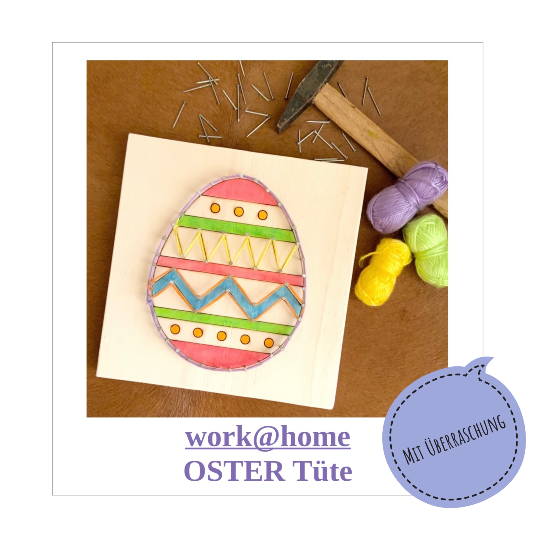 Ostereier aus der Ostertüte basteln mit Nägeln und Wolle ©Christa Lüdecke