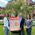 Endlich ist es wieder so weit, vom 23.-25. Juni laden das City-Management und die Stadt Rosenheim wieder zum Stadtfest ein. Sabrina Obermoser, Geschäftsführerin des City-Managements, überreicht Oberbürgermeister Andreas März und Judith Gebhart vom Stadtmarketing offiziell das Programmheft.
