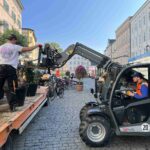 Der Max-Josefs-Platz verbreitet endlich wieder mediterranes Flair. Verantwortlich dafür ist das Team um Stadtgartenmeister Markus Sterzl, die heute Vormittag mit schwerem Gerät auf dem Max-Josefs-Platz anrollten, um Olivenbäume, Schwarzäugige Susanne, Sternjasmin, Dipladenien, Palmen aller Art oder Bougainvilleen aufzustellen.