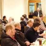 Zweiter Kreisvorsitzender Klaus Gschwendtner teilte seinen Vortrag in drei Teile ein. Einmal erklärte er das Thema Bildung als Schwerpunkt gleichwohl es trotz steigender Schülerzahlen in der Landwirtschaftlichen Berufsschule einen starken Lehrermangel gibt. Ein weiteres Thema war der Biber, der ein echtes, ja ein überdimensionales Problem im Landkreis Rosenheim ist. Und zum Dritten informierte er als Mitglied des neu gegründeten Praktikerrates von Bayerns Landwirtschaftsministerin Michaela Kaniber, dass dieser zusammen mit Vertretern der Umweltverbände brauchbare Vorschläge an die EU ausarbeitet, um der zunehmenden Bürokratie Einhalt zu gebieten. In der abschließenden Diskussion waren natürlich die Wolfsproblematik und der Brennernordzulauf, die Absage des Zentralen Landwirtschaftsfestes und Terminbekanntgaben im Mittelpunkt. Besondere Termine sind die Wahl einer neuen Bayerischen Milchkönigin und eines Milchprinzen (Anmeldungen bis 17.3. noch möglich beim Verband der Milcherzeuger Bayern) oder der „Tag der jungen Bäuerin“ am Dienstag, 12. März in Mietraching. Zur Zusammenkunft hatte in Abstimmung mit dem BBV-Rosenheim der Ortsverband Wildenwart eingeladen. Dessen Zweiter Obmann Konrad Huber begrüßte die bäuerlichen Vertreter auch als Hausherr und als Trachtenvorstand von Atzing und dessen Erster Obmann Ulrich Fischer leitete die Diskussion und bedankte sich bei den BBV-Referenten mit einem Eierlikör vom Wastlhof.