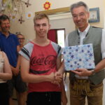 Alin Adrian Nica freute sich über das Geschenk aus Rosenheim, das ihm Landrat Otto Lederer überreicht hatte: ein gerahmtes Holzbild, das die Umrisse beider Landkreise vereint.