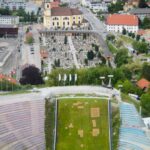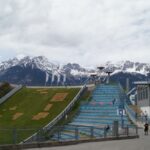 Nach zwei intensiven, hochinteressanten „Lehrstunden“ über die Glockengießerei ging es zum Bergisel und gut 40 m hinauf auf den Schanzenturm. Wer schon einmal die Übertragung der Vier-Schanzen-Tournee gesehen hat, kennt den Blick vom Bakken über den Anlauf hinunter nach Innsbruck, bei dem man meint, die Skispringer würden mitten in der Altstadt landen. Viel fehlt dazu auch nicht. Noch ein Stockwerk höher als der Bakken liegt die große Panorama-Terrasse, von der aus sich rundum ein schöner Ausblick bot – hinüber zum Patscherkofel sowie die Nordkette des Karwendels und das Wipptal hinauf Richtung Brenner. Weil die Bergisel-Schanze mit Matten belegt ist, kann sie auch im Sommer benutzt werden und so konnten die Besucher gerade noch einen Springer bei seinem letzten Trainingssprung für diesen Tag beobachten. Bergisel – der Name steht aber auch für ein dunkles Kapitel der bayrisch-tiroler Beziehungen, die Tiroler Freiheitskämpfe unter der Führung von Andreas Hofer, die 1809 zu den vier Schlachten am Bergisel führten. Glücklicherweise sind diese kriegerischen Zeiten längst Geschichte und so konnte sich die Gruppe vor der Heimreise noch am Andreas-Hofer-Denkmal zu einem Erinnerungsfoto zusammenstellen.