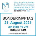 Parallel zur Plakataktion finden im Stadtgebiet immer mehr Vor-Ort-Impfungen statt, um es den Menschen so einfach wie möglich zu machen sich gegen das Coronavirus zu schützen und Rosenheim auch bei steigenden Zahlen vor einem neuerlichen Lockdown zu bewahren. Am Samstag, 14. August und am Samstag, 21. August steht der Impfbus in der Heilig-Geist-Straße am Max-Josefs-Platz. Von 9 – 16 Uhr können sich Impfwillige direkt und ohne Termin mit den Vakzinen von BionTech/Pfizer oder Johnson & Johnson impfen lassen.