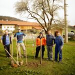 Zimmerermeister Klaus Huber, zuständig für Planung und Ausführung des Projektes, hat in Zusammenarbeit mit den einzelnen Vereinen ganze Arbeit geleistet. An sämtlichen freien Terminen wird am Bau weitergearbeitet, damit der Stadl pünktlich zur Saison in Betrieb genommen werden kann. Dabei gilt die Devise: viele Hände – schnelles Ende! Durch den Bau des Küchenstadels mussten zwei Obstbäume am Platz weichen. Diese wurden natürlich neu gepflanzt. Tatkräftige Unterstützung erhielten die Baschtler dabei vom ersten Vorsitzenden des Obst- und Gartenbauvereins Simon Mayer und dessen Frau Gerlinde.