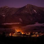 In besonderer Stimmung zeigt sich dieser Wintertage der Samerberger Ortsteil Rossholzen mit seiner ortsbildprägenden Kirche “St. Bartholomäus”. Wie weihnachtlich beleuchtet präsentiert sich das Dorf mit Kirche, Moarhof und Altenheim mit den dahinter liegenden Bergen und gibt so einen passenden Charakter zu den Festtagen während des Jahreswechsels.