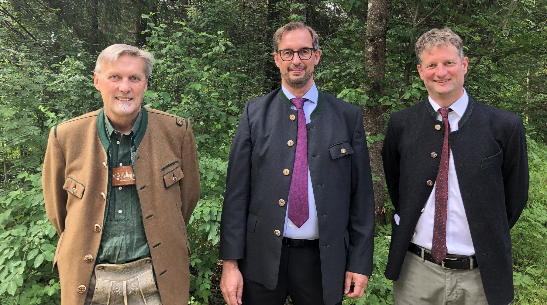 Von links: Der scheidende Forstbetriebsleiter Paul Höglmüller, der Vorstand der Bay. Staatsforsten AöR Manfred Kröninger und der neue Forstbetriebsleiter des Forstbetriebes Ruhpolding Joachim Keßler