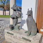 Hund und Katze in perfekter Harmonie – wer dieses „Kunststück“ sehen will, der braucht nur auf den Rathausplatz in Eggstätt zu schauen. Dort, direkt vor dem Haus des Gastes, sind die beiden Figuren „Hund und Katze“ der Eggstätter Künstlerin Christine Stadler angebracht. Streng beobachtet werden die beiden von zwei Bronze-Eulen, die die Künstlerin im Jahr 1960 gefertigt hatte –in Sichtweite ist zudem ihre Installation „Die ersten Europäer“ am Rathaus aufgestelltt.