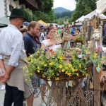 Holz ist auch im Plastikzeitalter noch vielfach der Ursprung aller Dinge im Oberen Priental – beinahe wenigstens. Egal ob aus einem Baumstamm mit Beitel und Stemmeisen eine Frauenfigur zurechtgeschnitzt wird oder mit dem Schnitzmesser zu Edelweißblüten oder ob aus Spänen ein Korb oder eine Schwinge geflochten wird. Bei allen Arbeiten konnten die Marktbesuchter beim 20. „grenzenlosen“ Sachranger Bauern- und Kunsthandwerker Markt zuschauen. Aber es gab noch viel mehr zu sehen, knapp 100 Standlleute zeigten ihre Waren und vor allem auch ihr Können unmittelbar am Stand, vom Holzschnitzer über die Töpferin bis zum Hirschhornknopfmacher. Es gab wieder viel zu sehen und Neues zu erfahren auf dem Sachranger Bauern- und Kunsthandwerker Markt und nicht immer waren die Antworten ganz leicht zu geben. Welche Kleidergröße hat eigentlich Barbie? Wo gibt es Stoff für ein Barbie-Dirndlkleid zu kaufen? Wie heiß ist ein Schmiedefeuer und wie heiß ist das Feuer des Glasbläsers? Wie viele Zähne hat ein Rechen und aus wie vielen Holzarten wird ein Rechen gemacht? Wie funktioniert ein Spinnrad? Welches Material braucht ein Korbmacher und was ist eine Schwinge? Weil all diese Handwerker auf dem Markt da waren und man ihnen in ihrem Standl bei ihrer Arbeit zuschauen konnte, waren alle Fragen zu beantworten. Die Standlleute hatten viel Zeit und auch wenn es eigentlich pressiert hätte, gaben sie noch geduldig Auskunft. Der Markt dauert zwei Tage und so verteilten sich die Fragen auch auf zwei Tage. Brotzeit machen können die Besucher überall auf dem Markt – überall gibt es etwas zu schauen und auch zu probieren.