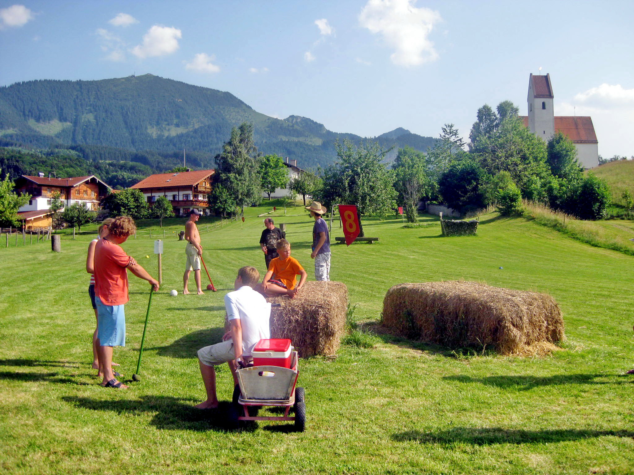 Jetzt geht es wieder los für Einheimische, Gäste, Familien und Firmen beim Bauerngolf-Parcour auf dem Samerberg gleich neben der dortigen Ortskirche – die Saison ist eröffnet!
