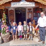 Foto: Hötzelsperger – von links: die neuen Samerberger Erstklassler von links: Julius, Ilona, Xaver und Anton mit Entenwirt Peter Schrödl