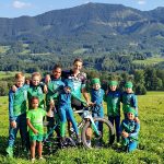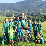 Foto: Hötzelsperger – Marcus Burghardt mit Samerberger Nachwuchssportlern mit der Hochries im Hintergrund