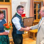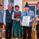 Die Laudatio für Bartholomäus Binder (80) hielt Trachtenvorstand Martin Schober vom Trachtenverein „Almenrausch“ Rossholzen. Schreinermeister Bartholomäus Binder gehört seit 1959 dem „Baschtler“ Trachtenverein an, er war von 1961 bis 1985 Zweiter Vorstand, von 1981 bis 1989 Schützenmeister und von 1985 bis 1999 Erster Vorstand. Der inzwischen zum Ehrenvorstand Ernannte war beim Rossholzener Jubiläumsfest 1974 Festleiter, zugleich war er jahrzehntelang aktiv bei der Feuerwehr Rossholzen, seit rund 50 Jahren ist er Mitglied der Kirchenverwaltung Rossholzen und von 1972 bis 2013 ehrenamtlicher Brandschadenschätzer beim Brandunterstützungsverein Samerberg. In seiner Zeit als Gemeinderat von 1984 bis 1990 unter Bürgermeister Josef Deindl waren die Wasserversorgung, die Suche nach einem gemeinsamen Schulstandort und das Samerberger Jubiläumsjahr 1988 die großen Themen.