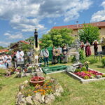 Diakon Günter Schmitzberger tröstete beim vom Samerberger Kirchenchor musikalisch gestalteten Requiem die Angehörigen und Freunde mit den Worten: „Auf die Frage WARUM habe ich auch keine Antwort. Auch ich habe meine Mutter drei Wochen vor meiner Diakonenweihe verloren. In meinem Weihegottesdienst habe ich ganz besonders an sie gedacht und da ist viel Traurigkeit von mir abgefallen. Heute noch spüre ich ihre Nähe und ich weiß, sie begleitet mich immer wieder in meinen Entscheidungen“. Der Diakon erinnerte auch daran, dass es für Vroni Daxlberger-Ascher ein Herzensanliegen war, das Wegkreuz bei ihr an der Straße neu zu gestalten, trotz der starken Schmerzen war sie am Pfingstsamstag bei der Segnung dabei. Eine große Lücke hinterlässt die Verstorbene beim Grainbacher Trachtenverein. Sie gehörte der Jugend- und Aktivengruppe an und sie war unglaublich lebenslustig.  Von 2010 bis 2012 war sie Musikwartin und hat in dieser Zeit mit Traudi Vordermayer mit dem Singen und Musizieren für Kinder angefangen. 2022 leitete sie das erste Kindertheater mit dem Titel „Schneewittchen und die 7 Zwerge“, darauf folgten „Der gestiefelte Kater“ und „Aschenputtel“ und von 2016 bis 2020 war sie eine zuverlässige Schriftführerin. „Du warst ein Vorbild und Aushängeschild für unseren Verein, nun sei Dein Wunsch mir Befehl“, so die Trachtenvorständin Ramona Sattlberger abschließend und so bat sie das Samerberger Bläserquartett um ein flottes und fröhliches Stück am offenen Grab und um einen lautstarken Juchzer von Johannes Stuffer. 30 Jahre war Vroni Daxlberger-Ascher in verschiedenen Rollen auf und hinter der Bühne des Grainbacher Bauerntheaters. Der langjährige Spielleiter Peter Wiesholzer und Spielerkollege Christian Irger erinnerten an viele lustige Begebenheiten und auch an das Mitwirken bei den dreimal zur Aufführung gekommenen Samerberger Freilichtspielen.  Die Fahnenabordnungen des Trachtenvereins und der Grainbacher Feuerwehr senkten sich zum letzten Gruß an der Grabstätte. Die Katholische Frauengemeinschaft dankte der Verstorbenen mit einem gemeinsamen Vaterunser.  Zu hören war auf dem Friedhof auch noch ein Abschiedslied, das von Vroni Sattlberger der Verstorbenen gewidmet wurde.