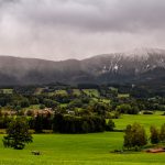 So schnell kann es gehen bei diesem Anblick auf dem Hochplateau Samerberg: nur wenige Tage nachdem Bade- und Sonnengäste im Samerberger Natur- und Freibad ruhig den Blick auf Grainbach und auf die nahe Hochries genossen zeigt sich diese nach dem Wettersturz mit einer ersten Schneebedeckung. So schön der Blick auch ist, zum Baden ist wahrlich zu frisch und auch zu nass.