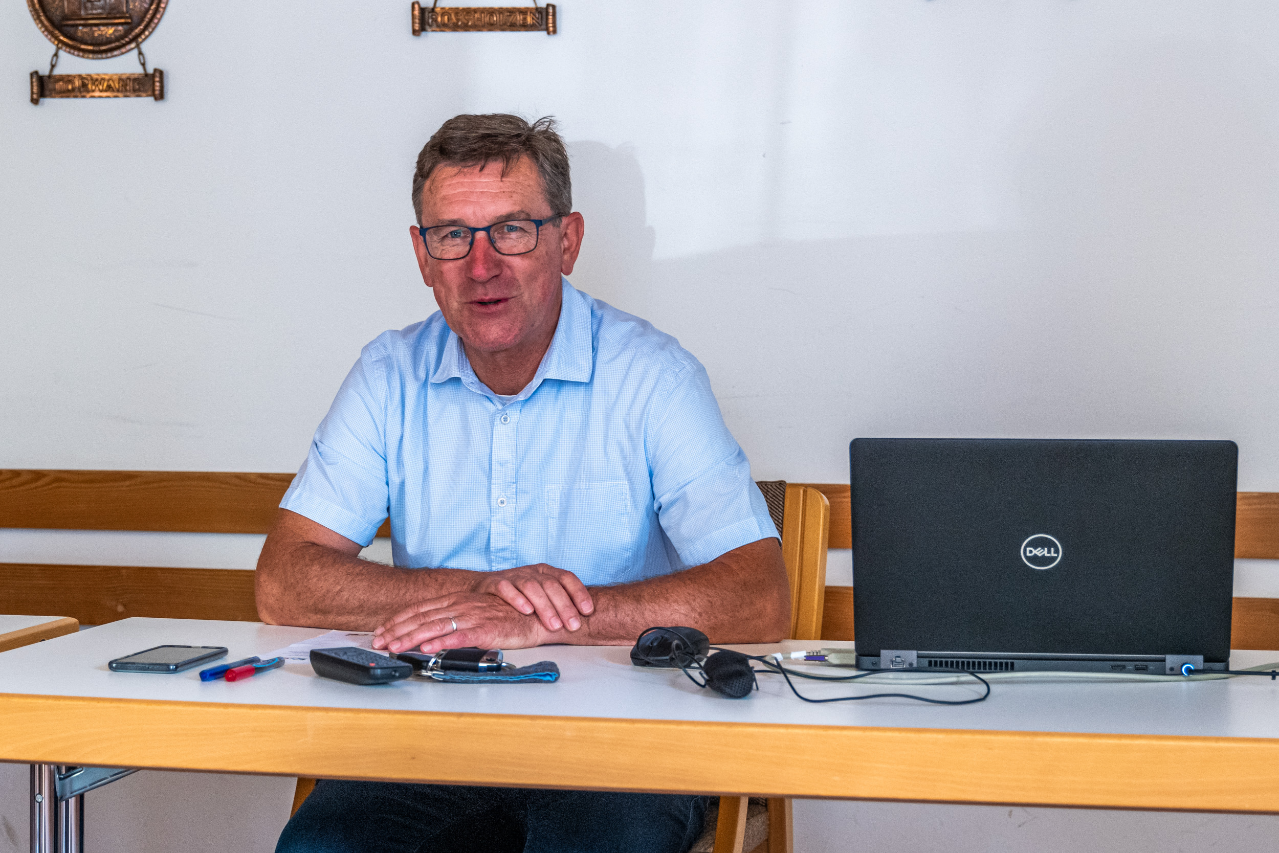 Georg Huber stellt im Rahmen einer Pressekonferenz im Rathaus Samerberg das Projekt: “Samerberg wohin?” vor.