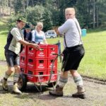 Den Auftakt bildete ein Berggottesdienst nahe der Zenznalm mit Diakon Günter Schmitzberger, der ganz frisch von der Ministrantenwallfahrt aus Rom zurückkam und der in seiner Predigtbotschaft die Wahrnehmung und Wertschätzung der Schöpfung Gottes im Alltag hervorhob. Die musikalische Gestaltung des Gottesdienstes übernahmen die Boarisch-Bries-Bläser, der Oberauer Viergesang aus Wildschönau, die Starnberger Fischerbuam, der Voglauer Sänger aus Siegsdorf, der Hamberger Viergesang, der Dreiwinkl-Gesang, die Sprittelsberger Zwoagesang aus Bad Kohlgrub sowie Rudi Ritter aus Schleching an der Zither. Guten Grund zum Dankesagen hatte Vorständin Ramona Sattlberger vom Grainbacher Trachtenverein. Alle Gruppen vom Gottesdienst und vom ganztägigen Alm-Zusammensein traten unentgeltlich auf, so dass auf einen Eintritt verzichtet werden konnte. Für die Auswahl und Organisation der Gruppen aus ganz Oberbayern kümmerten sich Monika Bauer und Ehrenvorstand Hans Sattlberger. Dieser lud zudem zum erstmals angebotenen offenen Jodeln und Singen beim Zenzn-Heustadl ein. Dort ließen sich die „Hochrieser“ mit Verstärkung sowie die Riadastoana-Jodlergruppe vom Tegernsee mit ihren Jodlern und Liedern hören und sie luden auch zum Mitsingen ein. Zusätzliche Musikanten und Gesangsgruppen waren nach dem Gottesdienst die Hubertus-Musikanten, der Buxbam-Zwoagesang, die Geschwister Bauer, der Karlinger Dreigesang, die Neukirchener Sängerinnen und die Starnberger Fischerbuam-Tanzlmusi, sie wechselten zwischen der Sigl-Alm und der Daxlberger-Hütte hin und her. Überall sorgten fleißige Hände für gute und almerische Bewirtung. Marianne Stuffer – eine der vielen aktiven Frauen – brachte soviel Teig mit, dass sie 300 Schmalz-Nudeln frisch aus dem heißen Fett herausholen und vor Ort anbieten konnte. „Dank der Sänger und Musikanten sowie der vielen Ehrenamtlichen und von Flötzingerbräu kam es zu einem echten Almgenuss, das Almsingen auf dem Moserboden war wieder ein ganz besonderes Erlebnis“ – so das Resümee am späten nachmittag von Vorständin Ramona Sattlberger.