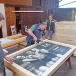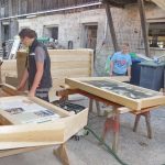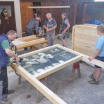 Alle Hände voll zu tun haben derzeit die Samerberger Bauern mit den Vorbereitungen für die neuen Landwirtschaftswege „Tal“ und „Almen“. Insgesamt 29 große Tafeln mit vielen Informationen und Illustrationen werden auf den beiden Wegen zur Aufstellung kommen. Die Aufstellung erfolgt nach dem Hoffest, das am Sonntag, 28. April beim und auf dem Estermannhof in Grainbach bei jedem Wetter stattfinden wird. Die Erlöse aus dem Hoffest mit Gottesdienst um 10.15 Uhr, mit Kutschfahrten und Bewirtung sowie mit einem Grußwort durch die Bayerische Landtagspräsidentin Ilse Aigner (gegen 13 Uhr) kommen gänzlich den Landwirtschaftswegen zugute. Die letzten handwerklichen Vorbereitungen wurden auf dem Lochnerhof getroffen, dabei halfen die Samerberger Bauern mit ihrem Nachwuchs zusammen, um die Tafeln aufstellbereit zu machen. Alle Tafeln, deren Botschaften, aber auch die Spender und Paten werden beim Hoffest näher erläutert.  Für die „Alm-Runde“ werden 13 Informationstafeln aufgestellt und für die „Tal-Runde“ werden es 15 sein, dazu kommt noch eine Groß-Tafel als Erinnerung an den „Scheibenmoos-Badesee“, in dem 1955 die bäuerliche Jugend vom Samerberg das Schwimmen lernte und eine Tafel an einem Felsgestein mit einem Dank-Gebet zum Herrgott.
