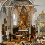 Um 15 Uhr beginnt das Adventssingen in der Pfarrkirche „Mariä Himmelfahrt“ gleich neben dem Dorfplatz-Geschehen. Dabei wirken mit die Samer Sänger, der Kirchenchor Samerberg, die Samerberger Weisenbläser, der Dreigsang Geschwister Bauer, Susanne Dräxl-Sinnhart mit Harfe, Hans Wiesholzer und Gabi Reiserer mit Ziach und Gitarre sowie Samerberger Kinder, die auf der Herbergssuche sind. Als Sprecher fungiert Diakon Günter Schmitzberger.
