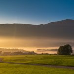 Morgenstund` auf dem Samerberg: zögernd, zart, so still und leise, schamhaft fast und auf bescheidene Weise bahnt die Sonne sich den Weg – und versetzt die von den Samerberger Gebirgsschützen frisch renovierte Mesnerkapelle zwischen Grainbach und Törwang in ein besonders faszinierendes Licht.