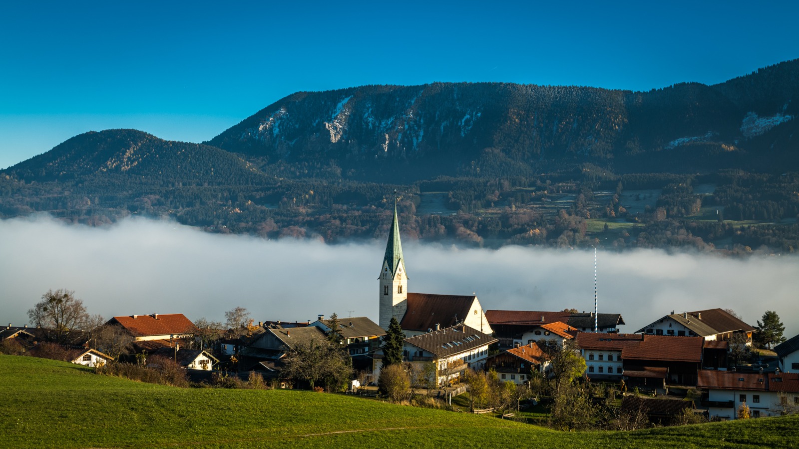 Der Alpenföhn wird zum Nachmittag schwächer und der Nebel zieht aus dem Tal nach oben zum Samerberg…