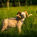 Ein stattliches und stolzes Exemplar eines Schafsbockes hat unser Fotograf im Ortsteil Untereck der Hochtalgemeinde Samerberg entdeckt. Das sanfte Grün der lichtdurchfluteten Weide macht ihn trotz seiner mächtigen und sonderbar geformten Hörner zu einem anscheinend friedlichen Zeitgenossen.