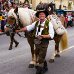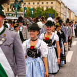 Der Münchner Trachten- und Schützenzug fand erstmals 1835 anlässlich der Silberhochzeit von König Ludwig I. und Therese von Bayern statt. Damals zogen festlich gekleidete Trachtengruppen und Schützenkompanien zur Theresienwiese – ein Brauch, der so populär wurde, dass er ab 1950 jährlich durchgeführt wird. Heute gilt der Zug als größter Trachtenumzug der Welt und präsentiert nicht nur bayerisches Brauchtum, sondern auch Gruppen aus ganz Deutschland, Europa und Übersee.