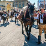 Die Historischen Samer vom Samerberg erinnerten mit ihren schwer bepackten Kaltblütern an die Zeit, als Salz noch auf Pferderücken von Hall in Tirol nach Rosenheim transportiert wurde – ein lebendiges Stück Handels- und Regionalgeschichte.