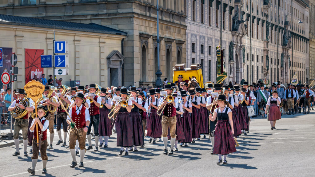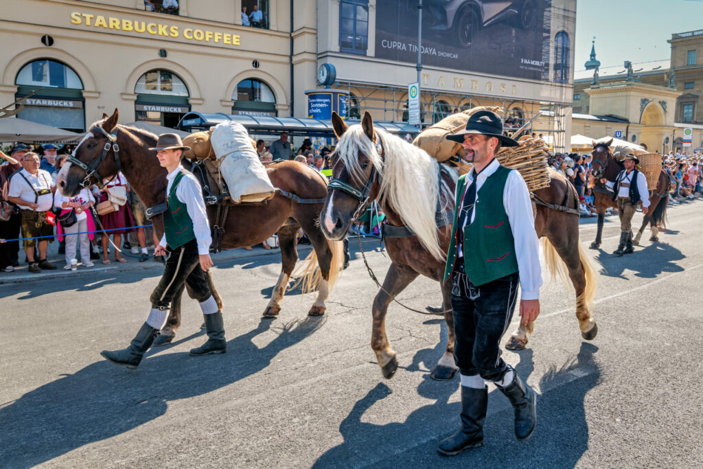 Was den Münchner Oktoberfestzug so einzigartig macht, ist seine Vielfalt: Während bei den bayerischen Gaufesten meist nur die Trachten einer Region zu sehen sind, präsentiert sich in München ein Querschnitt durch ganz Bayern – von der Dachauer Tracht, auch Ludwig-Thoma-Tracht genannt, über das Münchner Biedermeier-Gwand bis hin zu vielen regionalen Besonderheiten.