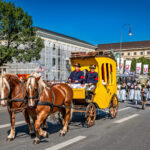 Die Historischen Samer erinnerten mit ihrem Auftritt an die Zeit des Salzhandels zwischen Hall in Tirol und Rosenheim. Mit schwer bepackten Kaltblütern, Fässern, Salzsäcken und originalgetreu nachempfundenen Gewändern boten sie ein lebendiges Bild vergangener Jahrhunderte. Für viele Zuschauer war dieser Teil des Zuges eine spannende Zeitreise.