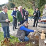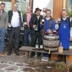 “Gut 20 Jahre bist Du zum Samerberg ins Tourismusamt gefahren und hast auch die Samerberger Wirte beworben, jetzt kommen wir zum Abschluss Deiner Dienstzeit einmal zu Dir” – mit diesen Worten brachte Wirtesprecher Peter Wiesholzer von der Käseralm eine kleine Schar von Wirte-Kollegen sowie einige mit den Wirten in Freundschaft verbundenen Samerberger Persönlichkeiten mit zum Waldweg in Prutdorf, um beim bisherigen Leiter der Gäste-Information Anton Hötzelsperger Danke zu sagen. Die Wirte kamen nicht mit leeren, sondern mit vollen Händen, sie brachten eine komplette Weißwurst-Brotzeit-Ausstattung sowie ein 50-Liter-Flötzinger-Dunkel-Faß und viel gute Laune mit. Die Familie Rosi und Toni Hötzelsperger bedanke sich ihrerseits mit Kaffee und Kuchen und so ergaben sich einige gemütliche Stunden an einem der letzten Sonnen-Herbsttage.