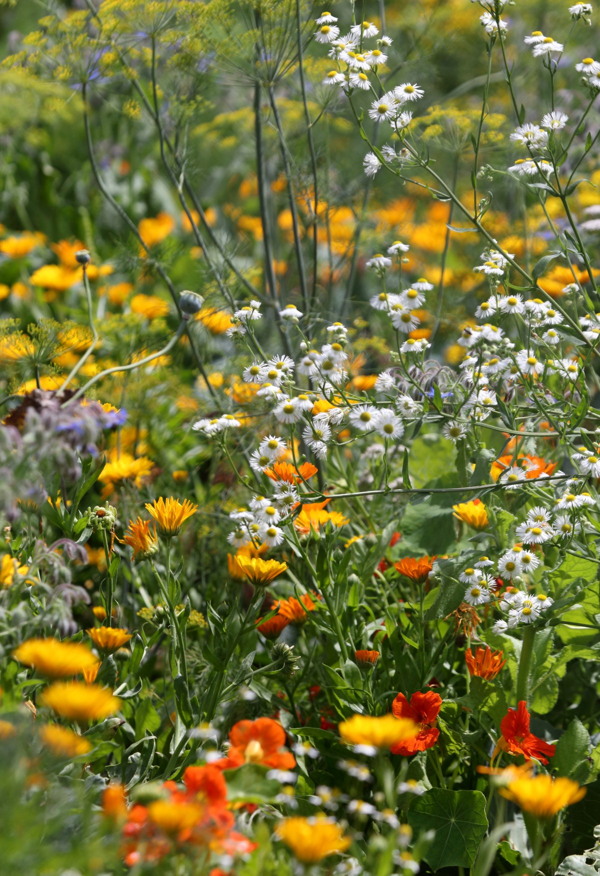 Viele Kräuter wie Alant, Baldrian, Beifuß, Frauenmantel, Kamille, Ringelblume, aber auch Majoran, Ysop oder Goldrute wachsen im heimischen Garten und können zum Kräuterbuschn binden Verwendung finden. © Bezirk Oberbayern, Archiv Bauernhausmuseum Amerang, Fotografie Gerhard Nixdorf.