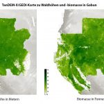 Die Kartierung dieser Strukturmuster ist ein wichtiges Element, um den Zustand der Wälder zu erfassen und Funktion und Entwicklung von Waldökosystemen in Modellen abzubilden. Das DLR nutzt dazu interferometrische Radar-Daten, die für das globale Höhenmodell der deutschen Satellitenmission TanDEM-X aufgenommen wurden, in Kombination mit Daten der NASA-Mission GEDI (Global Ecosystem Dynamics Investigation Lidar). GEDI nimmt mit Hilfe eines Lasers von der Internationalen Raumstation ISS aus punktuelle Messungen der 3D-Waldstruktur vor. Mit Methoden aus dem Bereich der künstlichen Intelligenz werden aus beiden Datensätzen Waldhöhe und Waldbiomasse flächendeckend abgeleitet.