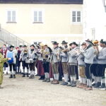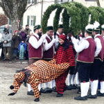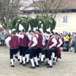 An die fünfhundert Besucher kamen in Thambach zusammen, um den Schäfflertanz zu sehen. Unter den Klängen der Trachtenblaskapelle Ramsau marschierten die Haager Schäffler, begleitet von den Spaßmachern im Kasperlgwand, in den Gutshof in Thambach ein.