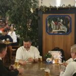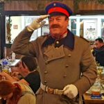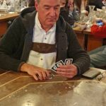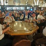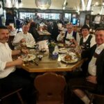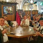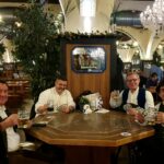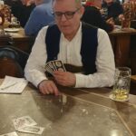 Standesgemäß hat sich die Kerngruppe in bayerischer Tracht zum Kartenspiel in dem originellen Wirtshaus eingefunden. Nach einer deftigen Brotzeit hieß es dann Solo, Wenz, Geier oder Sauspiel. Begleitet von zünftiger Live-Musik der Hofbräu-Hausband folgten dann 65 Spielerunden. Zufälligerweise hat sich als Zaungast der „Hauptmann von Köpenick eingefunden“. Mit Erstaunen nahm er die Schlachtrufe der bayerischen Spieler wahr: „Mit am unta gest ned unta.- Spui mit da Hundsgfickten – Wenns`t mi fragst, dann spuist was`d wuist – Da samma vahungert – Grün scheiss`n Gäns – In dera Hos`n hänga no a paar Hax`n – De Sau is ned des erste Schwein, des g`schlacht wird – Jetzt kimmt`s Gwitta von hintn – Jetzt hast vorm Türl in`d Hos`n gschiss`n – A Unter wirkt oft Wunder – A oide Henna gibt a guade Supp`n -Drauss samma – ….“.