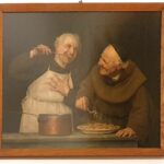 Pater Maximilian war hoch erfreut über den Besuch der Schafkopf-Prominenz aus Berlin. Nach einer Besichtigung des Klosters und gestärkt durch ein Abendmahl in den heiligen Räumen der Franziskaner wurden die Karten gemischt und die gemütliche Spielrunde nahm ihren Verlauf. Zur fortgeschrittenen Stunde brachte sich ein weiterer Franziskaner-Pater, Pater Bernhard, als versierter Schafkopfspieler mit ein. Dass der Kartenabend bis weit nach Mitternacht andauerte, lag nicht nur an der angenehmen Atmosphäre, sondern auch an dem „Nothelfer“-Gerstensaft der Brauerei Trunk des Wallfahrtsortes Vierzehnheiligen. Bereits seit 1803 wird dort Bier gebraut, um den Pilgern die Möglichkeit zu geben, sich vor dem Kirchgang mit einem „Seidla“ zu stärken.